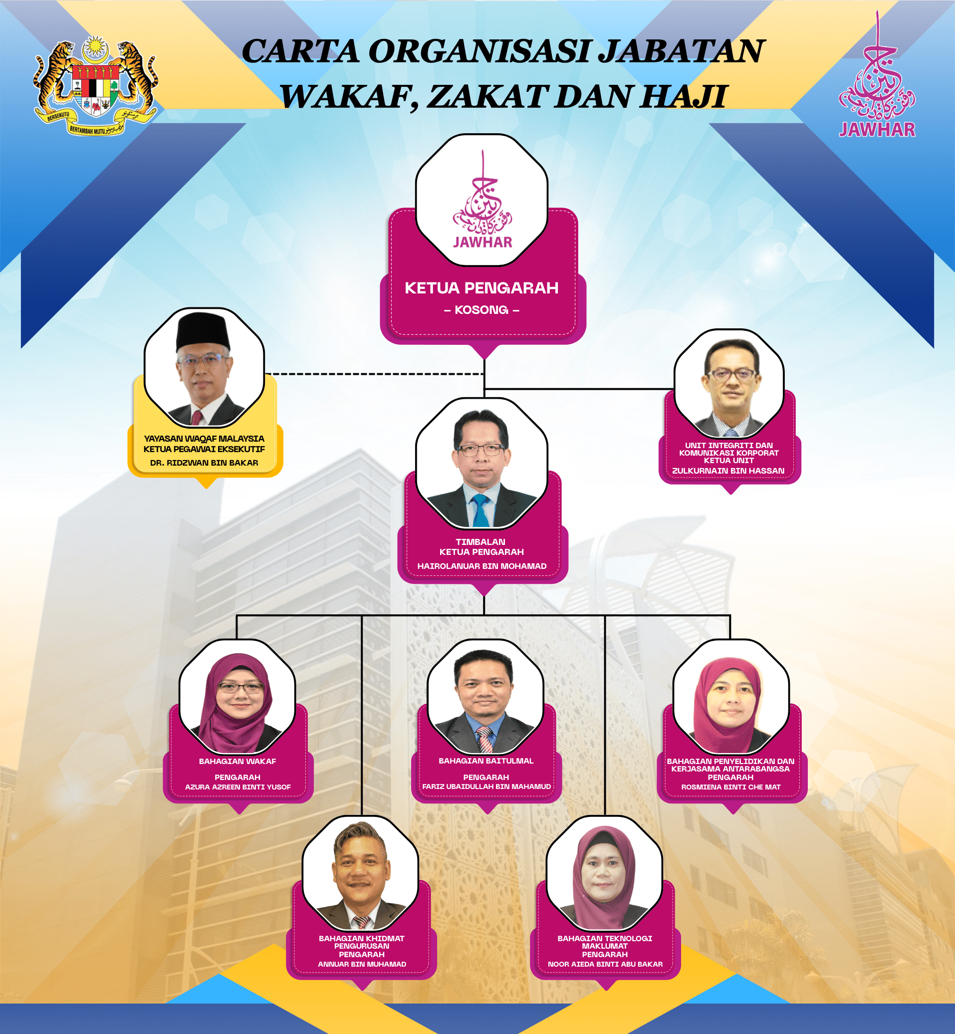 Utama > Info Korporat > Carta Organisasi Carta Organisasi Info Korporat Perutusan Ketua Pengarah Visi, Misi & Objektif Sejarah Penubuhan JAWHAR Profil JAWHAR Ketua Pegawai Maklumat (CIO) Bahagian-bahagian di JAWHAR Piagam Pelanggan Prestasi Piagam Pelanggan Carta Organisasi Majlis Bersama Jabatan Perutusan Ketua Pengarah Visi, Misi & Objektif Sejarah Penubuhan JAWHAR Profil JAWHAR Ketua Pegawai Maklumat (CIO) Bahagian-bahagian di JAWHAR Piagam Pelanggan Prestasi Piagam Pelanggan Carta Organisasi Majlis Bersama Jabatan